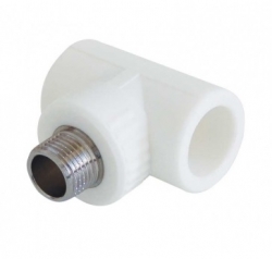 Тройник комбинированный 25х1/2" с нар. р. PPRC белый полипропилен Политэк