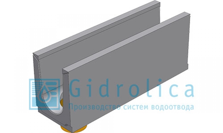 Лоток водоотводный Gidrolica состоит из монолитного U-образного корпуса с открытыми торцами, вкладыша из гладкого материала, гарантирующего отсутствие илистого налета, и съемной решетки, которую можно заменить глухой плитой в зоне проезда автотранспорта.