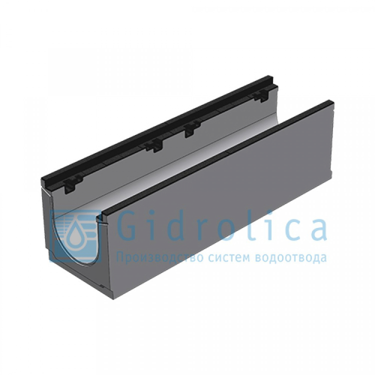 Лоток водоотводный бетонный коробчатый (СО-200мм), с чугунной насадкой, с уклоном 0,5% КUу 100.29,8 (20).27,5(20,5) - BGZ-S, № -5, Gidrolica