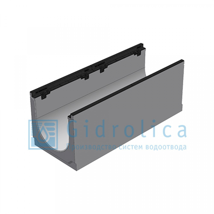 Лоток водоотводный бетонный коробчатый (СО300 мм), с чугунной насадкой, с уклоном 0,5% КUу 100.39,9 (30).33,5(26,5) - BGZ-S, № -13, Gidrolica
