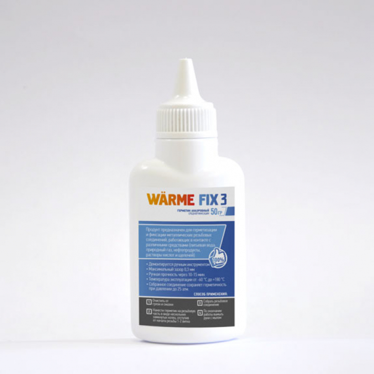 Анаэробный герметик WARME FIX 3 отличается стойкостью к воздействию следующих сред: вода, нефтепродукты, природный газ, гидравлическая жидкость, этиленгликоль, пропиленгликоль, глицерин.