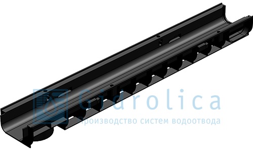 Чтобы избежать засорения канала крупным мусором, используется лоток водоотводный пластиковый с решеткой. Такой вариант подходит для решения большинства проблем с отводом природных вод.