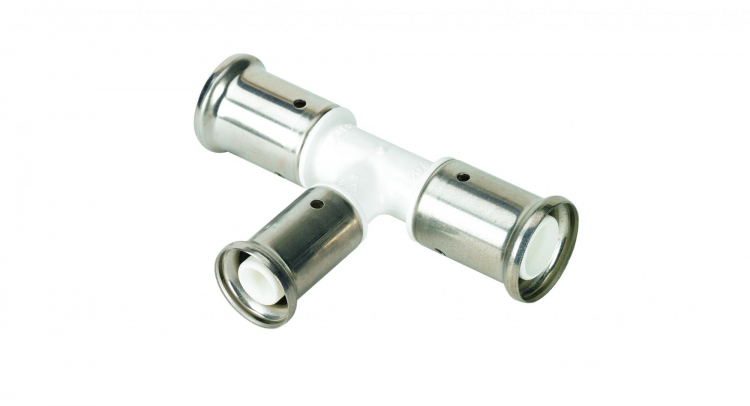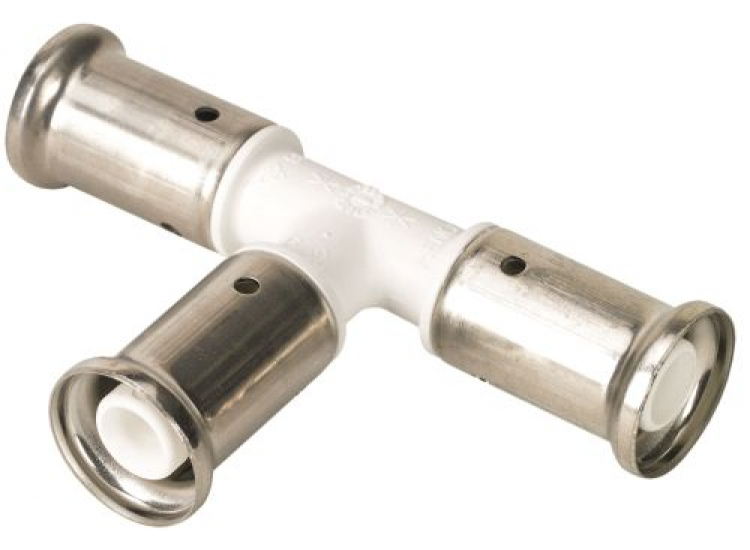 Предназначены для систем хозяйственно-бытового назначения для холодной и горячей воды, отопления, теплого пола и стен, в технологических трубопроводах, в которых транспортируются не агрессивные для металлопластиковых изделий среды. Стыковка выполняется с применением обжимок, включает гайку, сухарь латунь, кольцо из фторопласта, 2 прокладки из EPDM (специальный силикон). Соединительные части запрещается заливать в бетон или стяжку, лучше всего резервировать и оставлять к ним доступ, на случай ремонта. Монтируются ключом. Пресс-фитинги (это гильза из нержавейки, которая расположена в пазах). При пресс опрессовке (её называют аксиальной) клещами получается крепкое соединение. Преимущества: